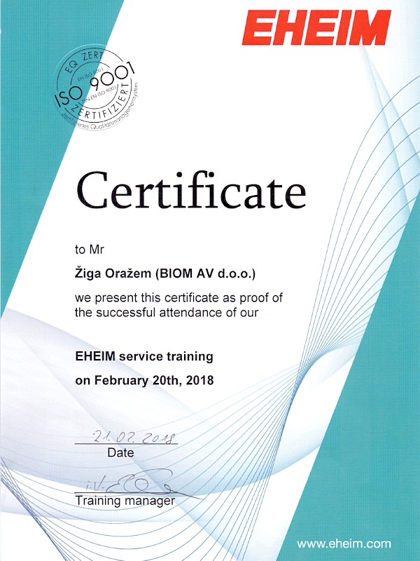 Naše podjetje, poleg veleprodaje in maloprodaje izdelkov najkakovostnejšega evropskega proizvajalca Eheim, nudi tudi storitve s področja vzdrževanja, izobraževanja o pravilnem ravnanju s tehničnimi izdelki ter popravila vseh izdelkov znamke EHEIM.