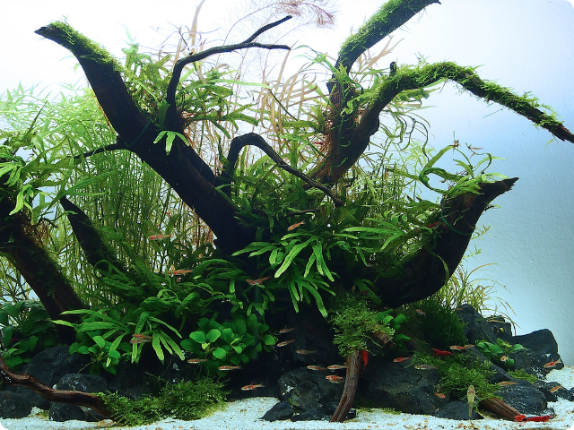 Biljke zahtijevaju kontinuirano uređenje. Brzoratuće vrste redovito skraćujemo kako ne bi zasjenile akvarij i ometale protok, a istovremeno orezivanje potiče gušći rast i stabilnost cijele kompozicije. U nizozemskim i prirodnim japanskim postavama to je posebno važno, jer su ravnoteža, ritam i perspektiva među biljkama ovisni o preciznom održavanju. Meka voda i snažna rasvjeta u biljnim akvarijima zahtijevaju dosljedno gnojenje makro- i mikroelementima; u suprotnom biljke stagniraju, a prostor zauzimaju alge.